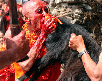 Ezio - Algo parecido aconteceu numa cidade do Nepal, onde assisti o sacrifício de um búfalo para uma divindade daquela gente. O homem da faca arrancou-lhe a carótida, ainda vivo, e com ela esguichou todo o seu sangue sobre uma estátua da divindade que estava sendo homenageada… Sem nenhuma demagogia, tive mais empatia com aquele animal do que com todas as populações ao redor do Himalaia.