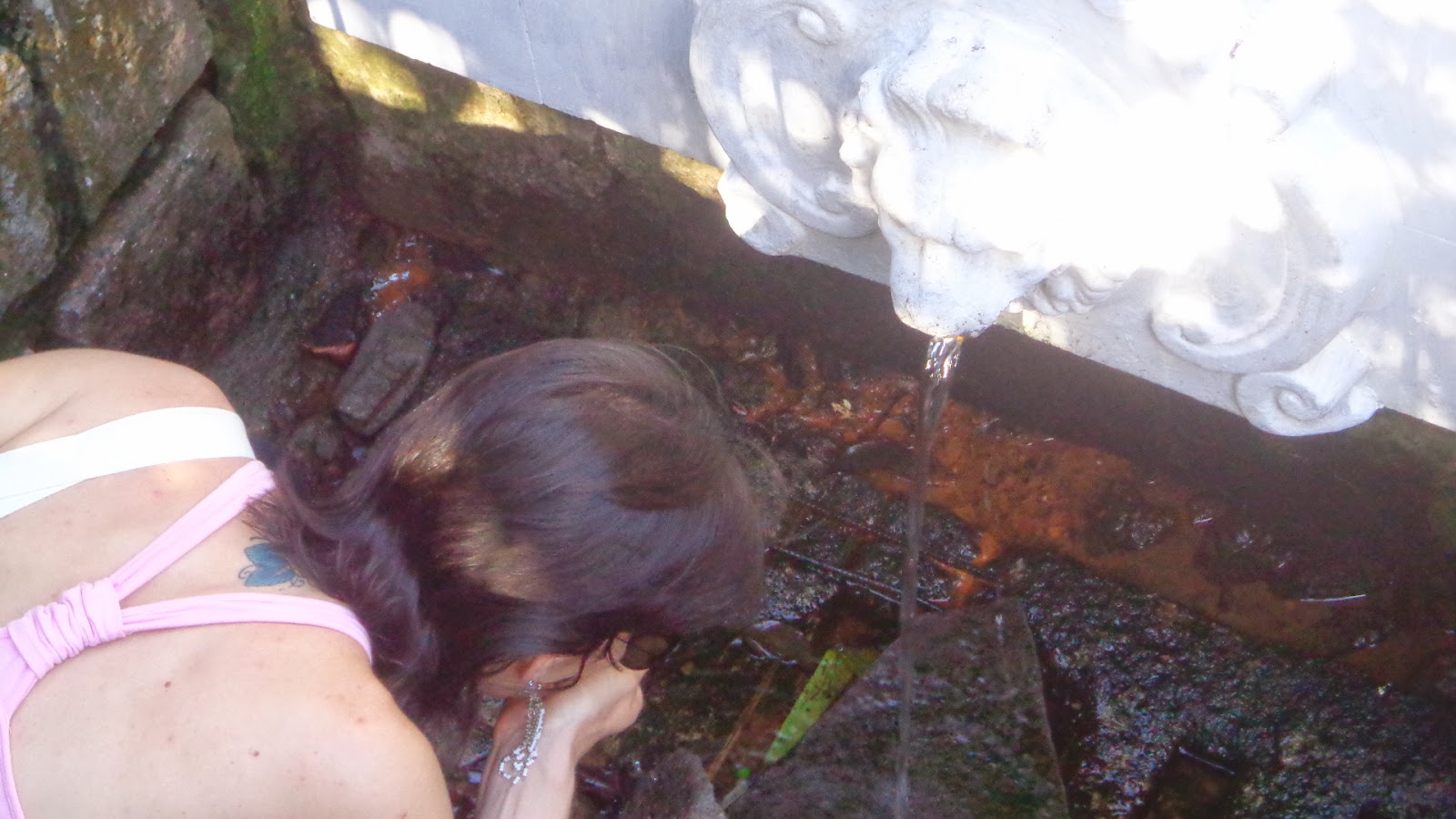 | A santinha em frente à fonte de água. foto Marcio de Almeida Bueno http://diretodeportoalegre.blogspot.com.br/ |