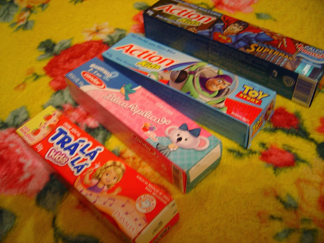 Estas marcas aqui são encontradas na parte infantil das farmácias e supermercados. Algumas são da Condor, que, como podem conferir no link acima, são da Dental Prev, dona da grande parte de marcas não testadas. A Action e a Trá Lá Lá são marcas novas nessa nossa lista.