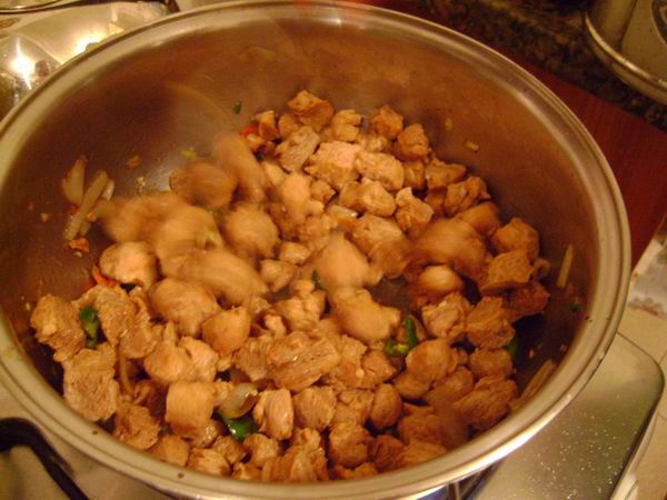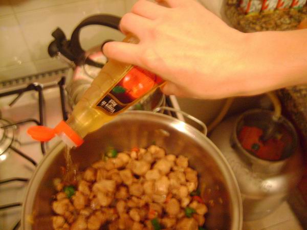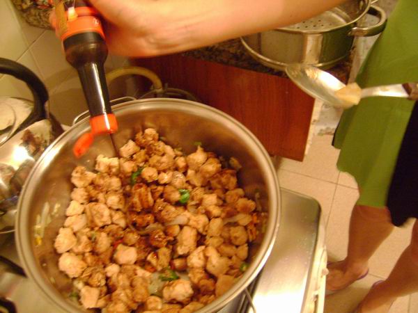A hora de colocar muito shoyu. O segredo desse prato é os temperos e o tempo de refogado, quanto mais, melhor.