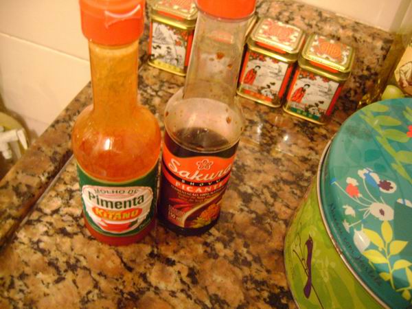 Temperos diversos, aqui usei azeite de oliva italiano. Não compro mais azeite português, nem espanhol, pois mesmo em crise, estes países investem grana pesada em touradas e outras barbáries. Temos esse cuidado. Não podemos fazer tudo, mas tudo o que fizemos é com reflexão.