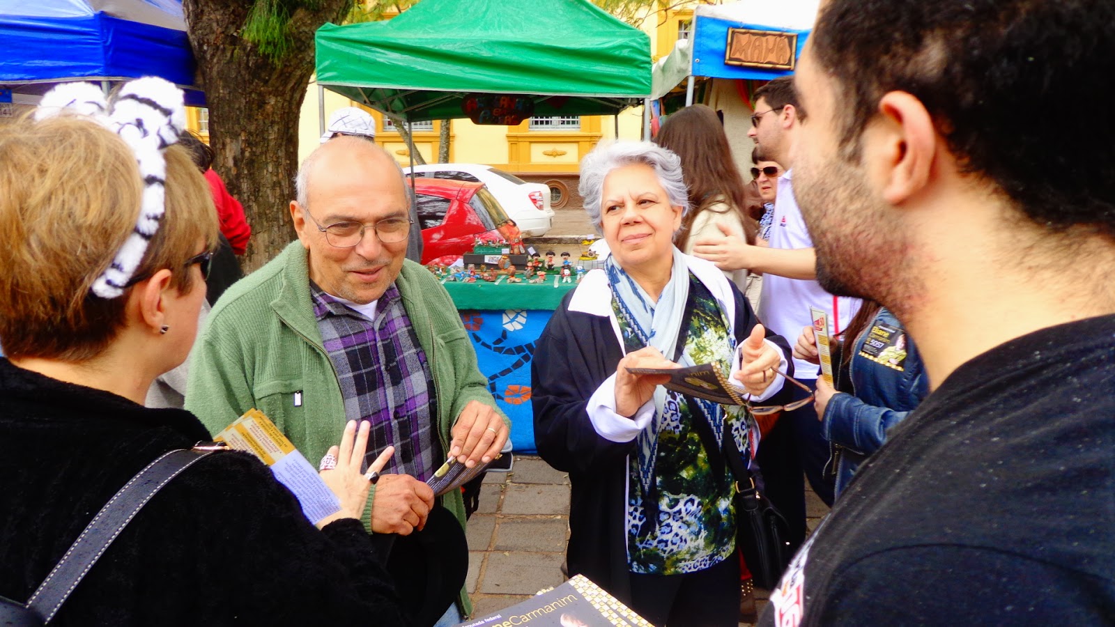 Eliane Carmanim conversando com os passantes sobre seus projetos.