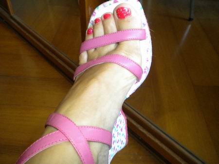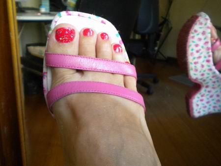 E o dos pés é um vermelho coral com brilho, achei este muito mais bonito.