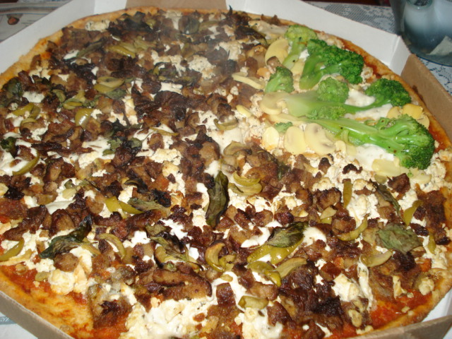 A pizza vegana é uma delícia, é fácil de fazer, é barata e os ingredientes variam, a gente pode inventar por que na verdade, o mais difícil mesmo é o queijo vegetal, coisa que nossa amiga Tati está fazendo. Ela faz queijo vegetal e também um requeijão vegano delicioso, que usamos nas pizzas e nas massas também.
