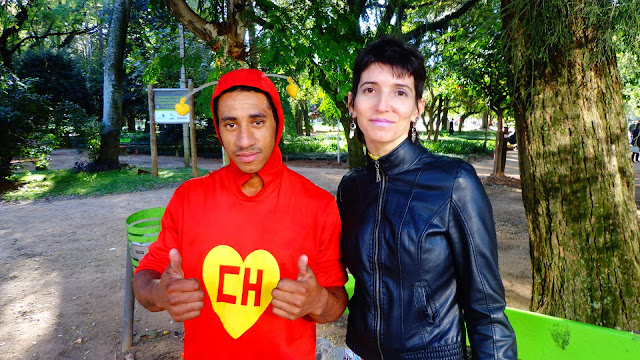 Aqui uma loja de variedades e já encontrei meus amiguinhos, Chaves, Chapolin, Chiquinha, Kiko, Nhonho, nossa, tem quase todo mundo da turma aí... estão feinhos, mas tudo bem... Uma foto bem colorida que me alegrou muito...