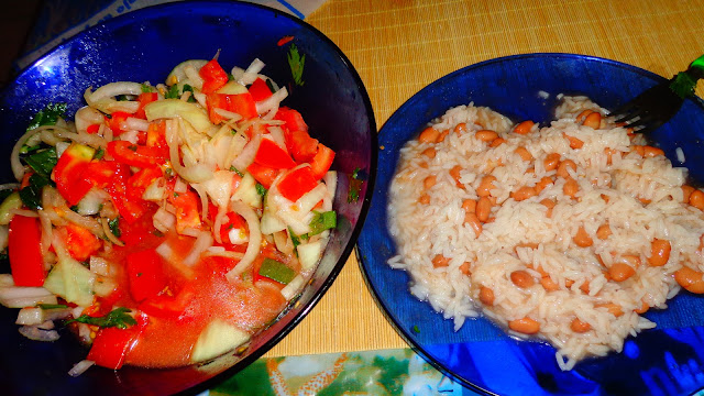 Arroz com feijão e salada.