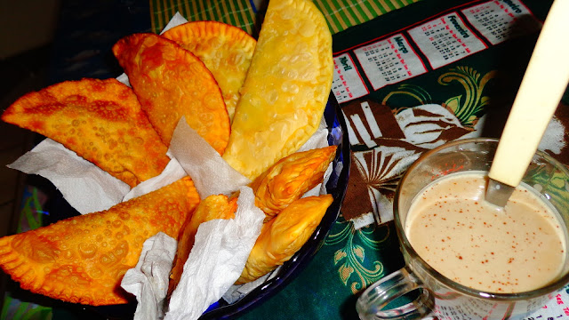 Detesto aqueles chatos que ficam gritando 'gordura'! 'fritura'! Se não prejudica os animais, estou topando. Principalmente na praia, onde minha preocupação maior é ver o mar e o farol. Aqui é um pastelito com café solúvel e leite de soja.