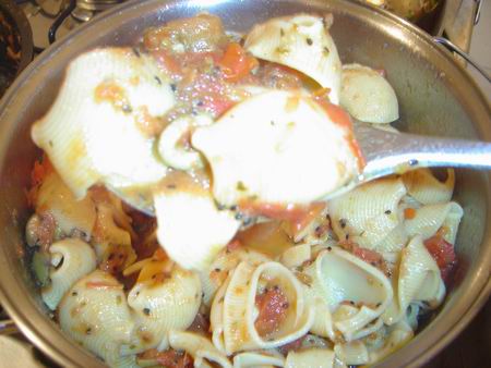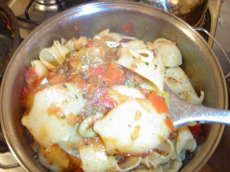 Essa massa é muito prática. O molho pode ser encorpado ou mais suave, dependendo do gosto. Mas é importante fazer bastante molho, para encher as 'conchinas' de massa.