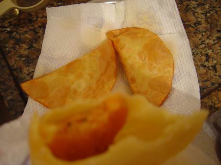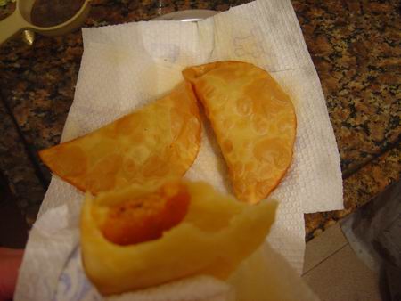 Pastel de rodoviária do marido. É super prático, feito com recheio de legumes. Na praia por que não?